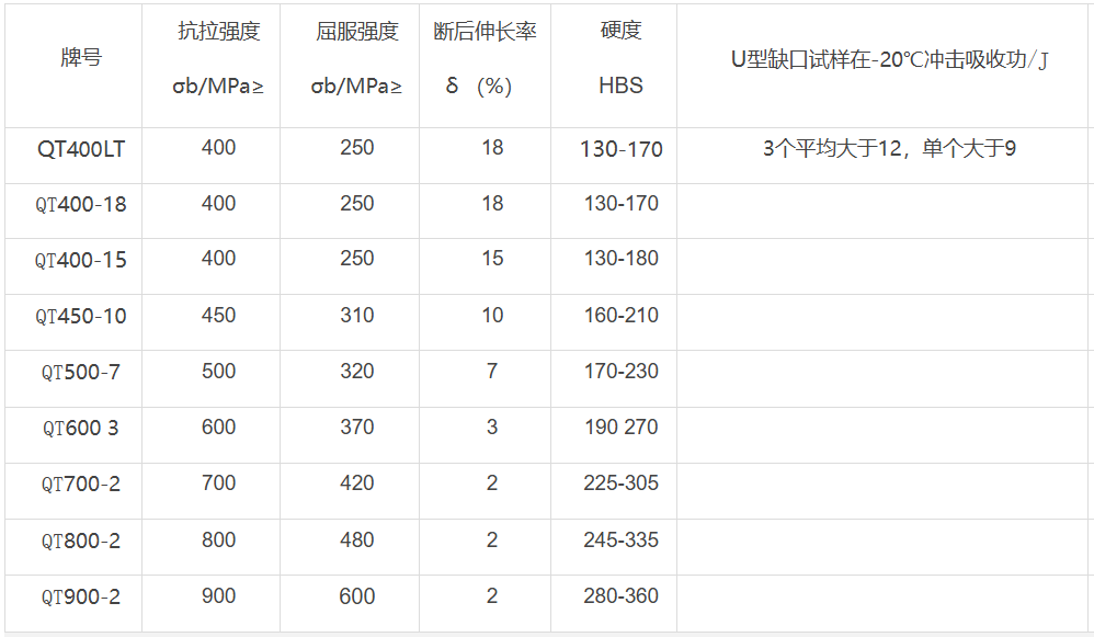 の機械的特性延性鋳物主に引張強度の特性、降伏強度特性、休憩後の伸び、硬度などに反映されます。特に、材料の選択に特に重要な大きなトルクに耐える必要がある重要な機械的成分が必要なため、各材料の機械的特性データに厳密に応じて実行する必要があります。